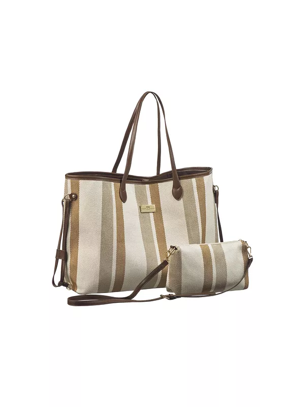 Вместительная пляжная сумка 2 в 1 модного дизайна Коллекция Two-in-one 2024 с клатч -косметичкой на молнии. Сумка дополнена длинным ремнем и внутренней застежкой.