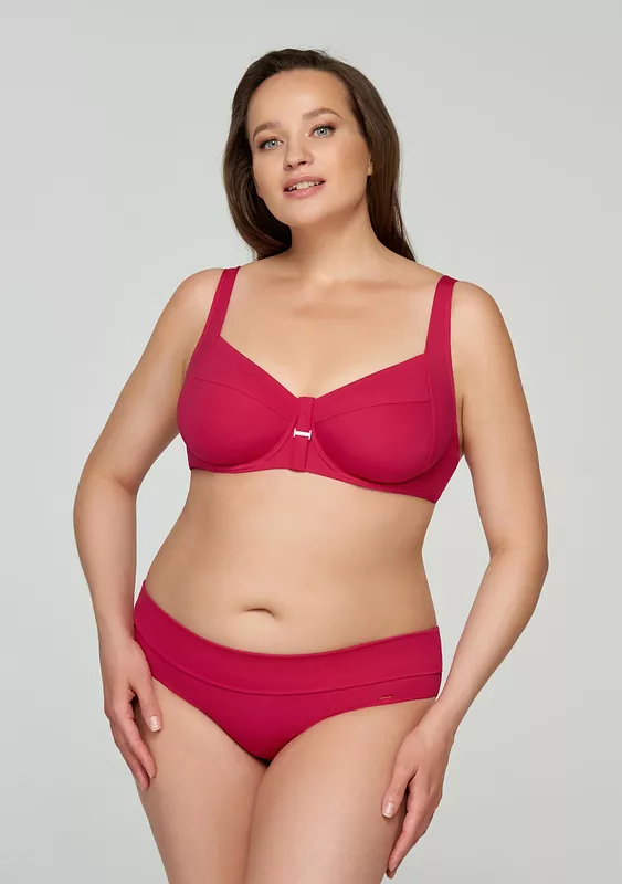 Мягкие бретели увеличенной ширины обеспечат комфорт для большой груди, регулируются. На спине застежка, между чашек декор.